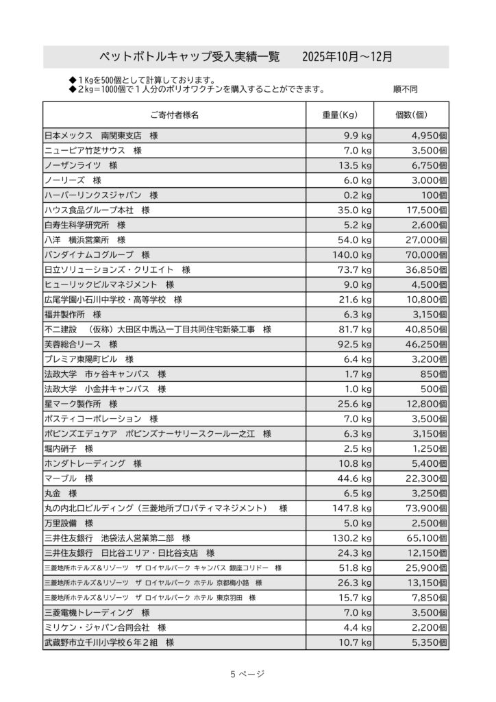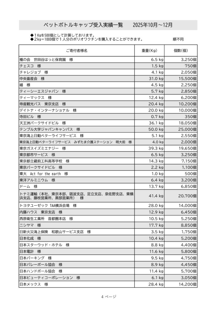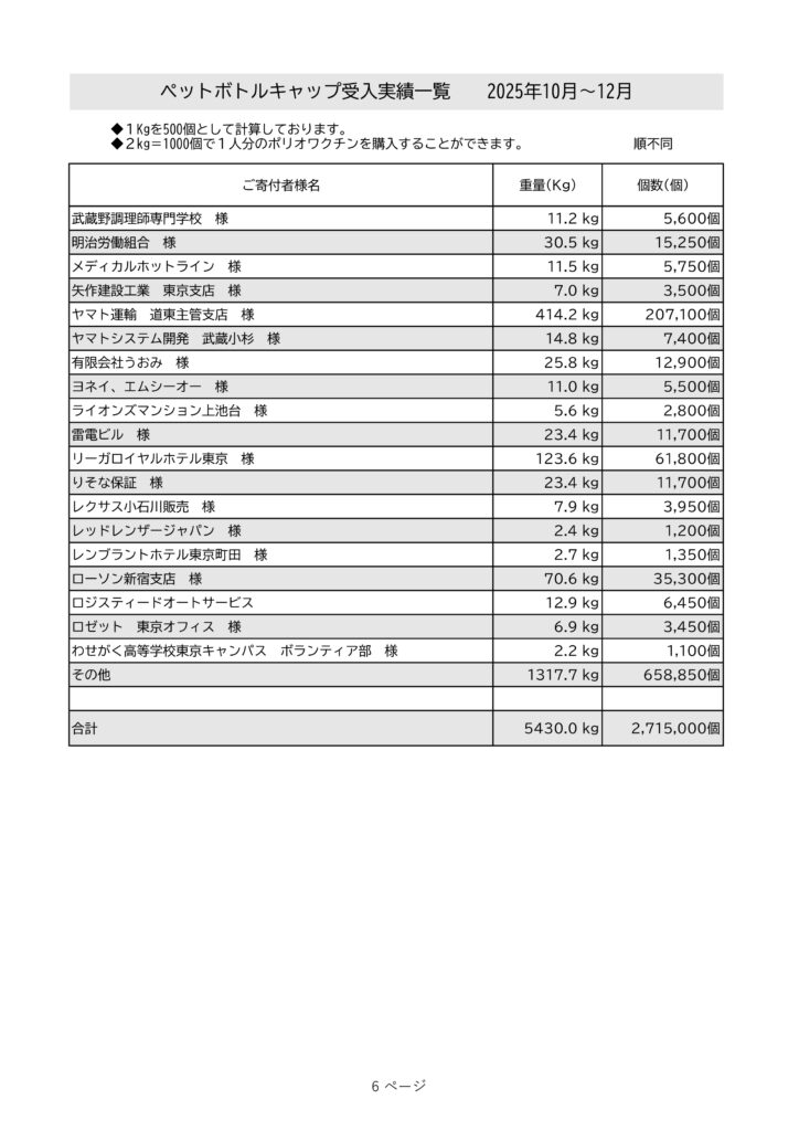 この度は、弊社にペットボトルキャップをご提供頂きまして、誠に有難うございました。